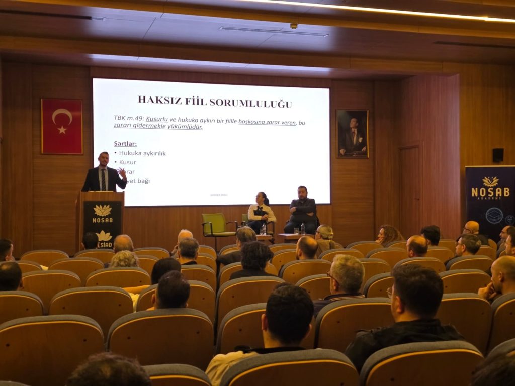 NOSAB Yalçın Aras Konferans Salonu’nda düzenlenen programa 50’nin üzerinde sektör temsilcisi katıldı. Seminerde, iş kazaları sonrasında iş güvenliği uzmanları, işverenler ve diğer İSG profesyonellerinin karşı karşıya kalabileceği hukuki ve cezai sorumluluklar kapsamlı şekilde ele alındı.