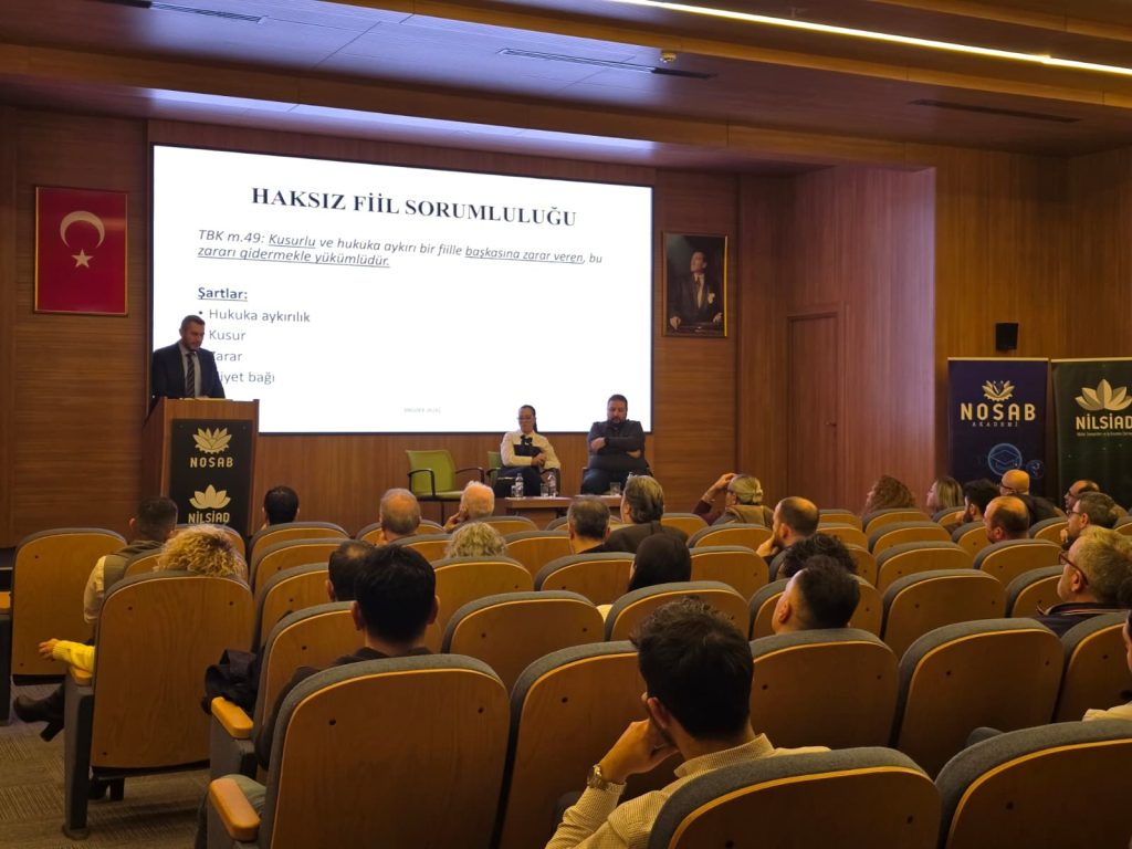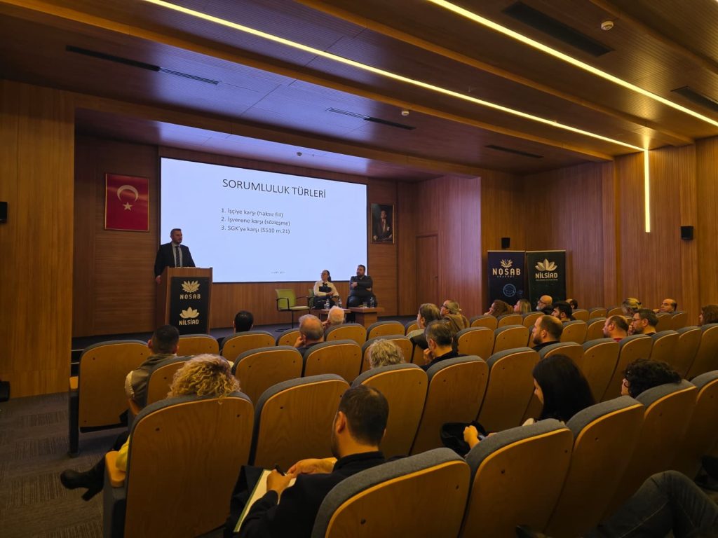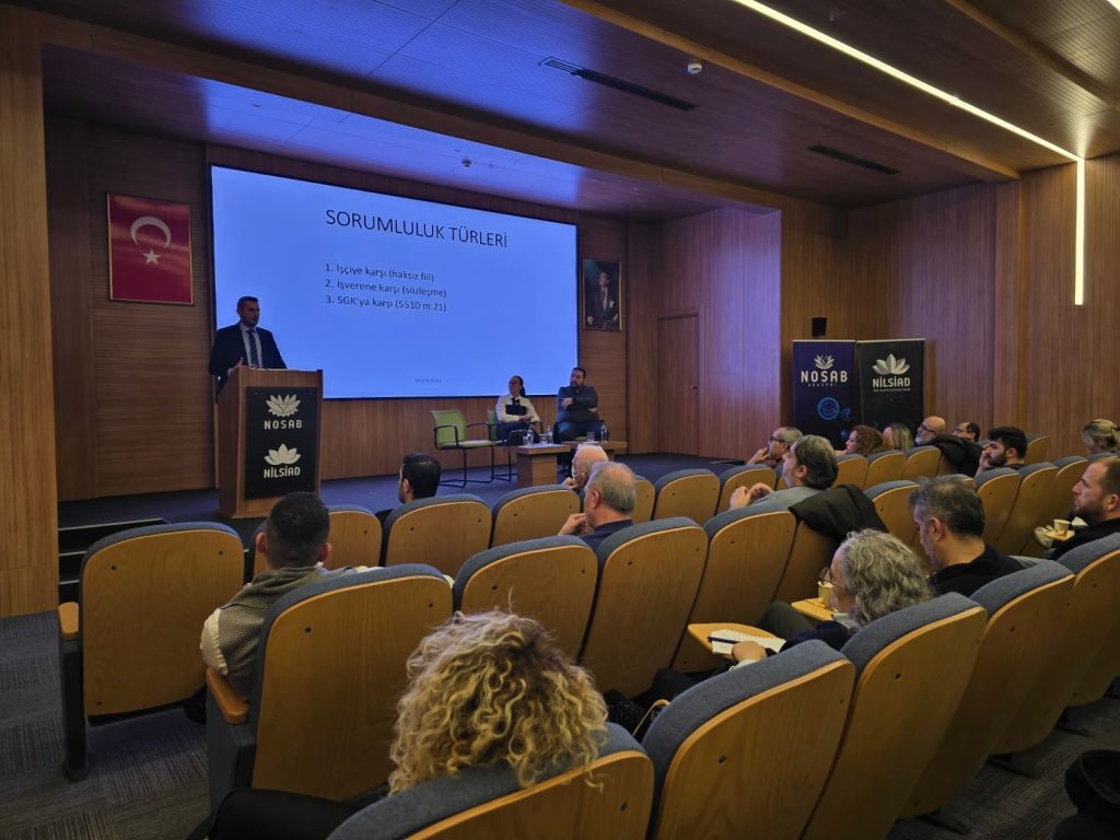 NOSAB Yalçın Aras Konferans Salonu’nda düzenlenen programa 50’nin üzerinde sektör temsilcisi katıldı. Seminerde, iş kazaları sonrasında iş güvenliği uzmanları, işverenler ve diğer İSG profesyonellerinin karşı karşıya kalabileceği hukuki ve cezai sorumluluklar kapsamlı şekilde ele alındı.